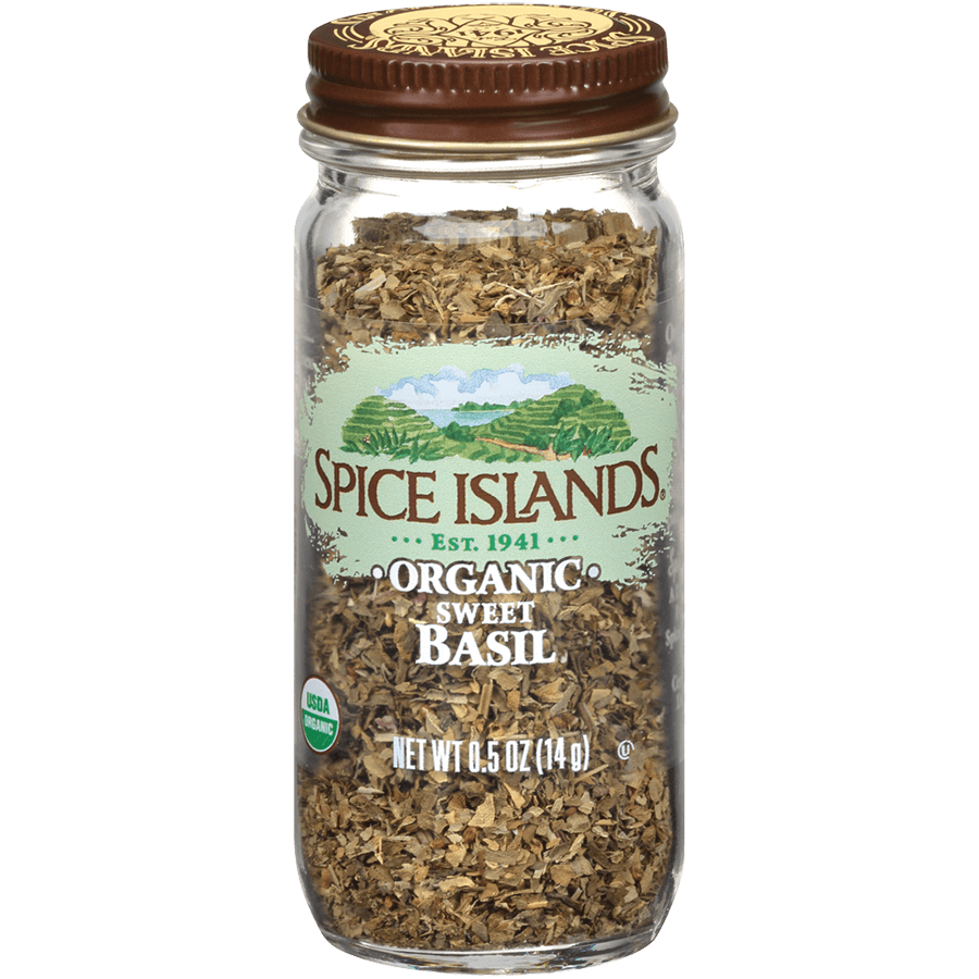 Spice Islands® 100% organic sweet basil is grown using sustainable, environmentally friendly practices. The result is a coarse-cut basil with a robust taste and a fresh green color.