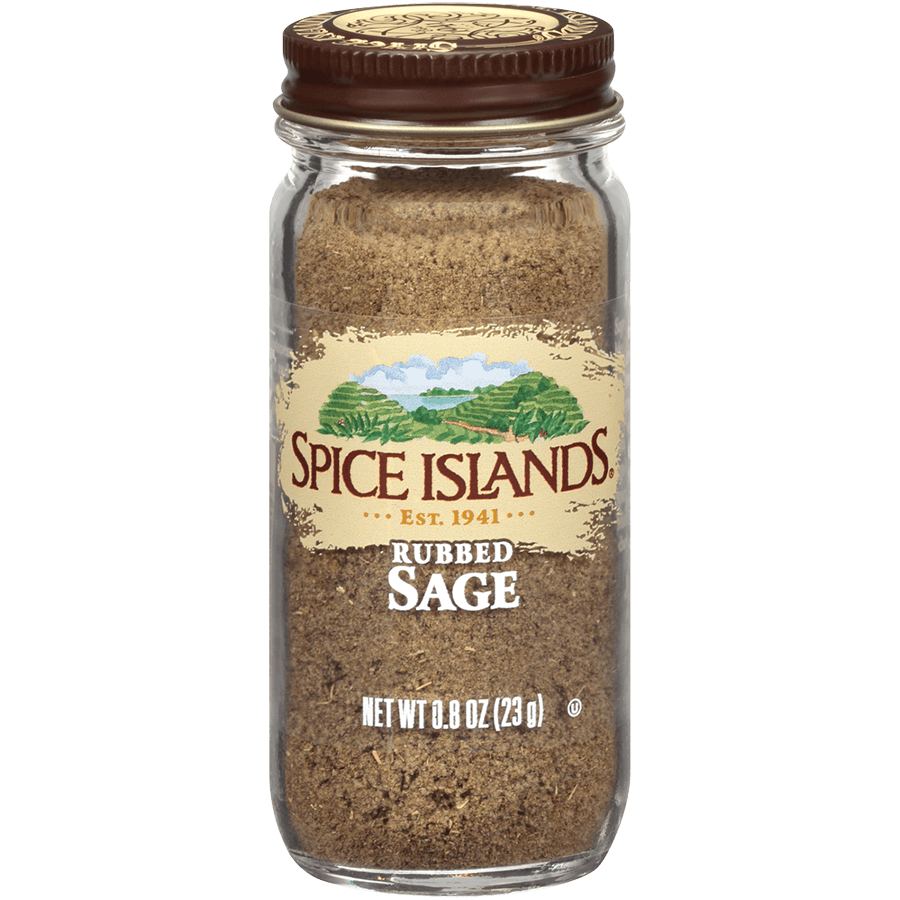 Our Spice Islands® sage is lightly ground and passed through a coarse sieve, a process known as rubbing. Quite potent, it should be used sparingly or in dishes with longer cooking times.